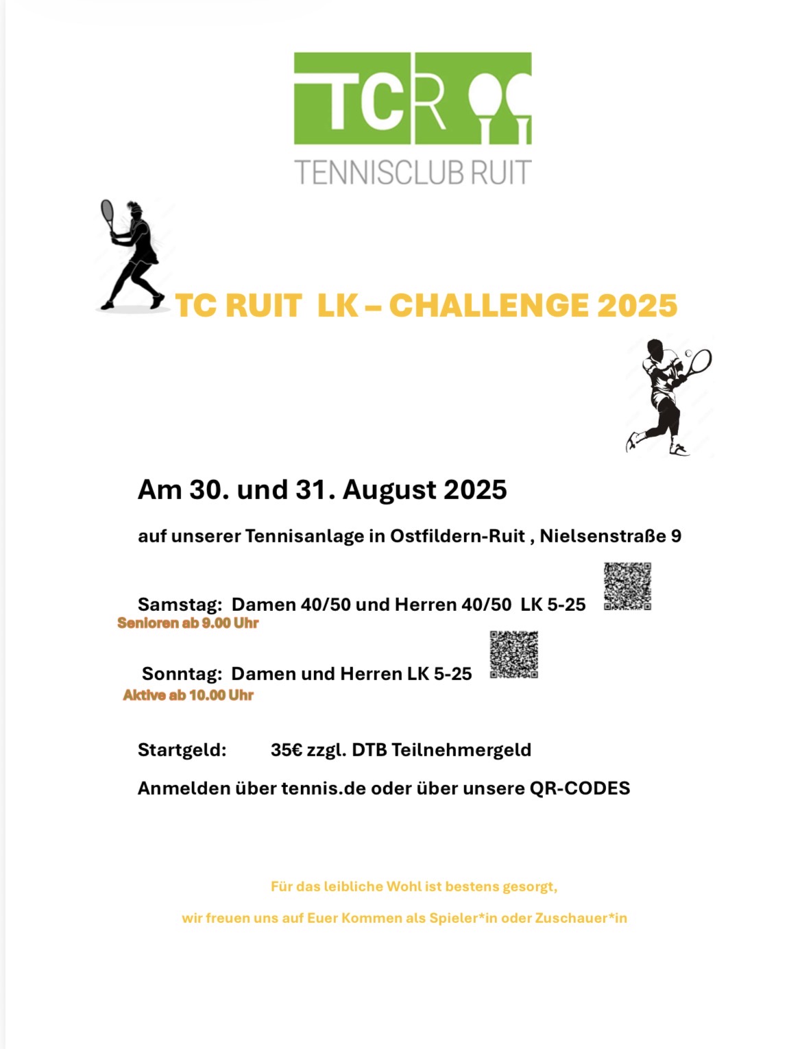 Startgeld: 35€ zzgl. DTB Teilnehmergeld Anmelden über tennis.de oder über unsere QR-CODES